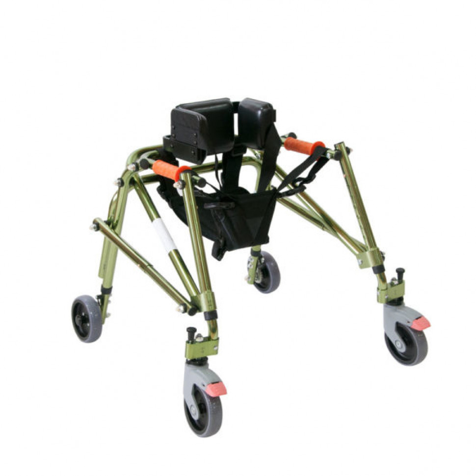 Ходунки на четырех колесах реверсивного типа предназначены для детей-инвалидов, страдающих различными формами ДЦП, способствуют устранению нарушений осанки и патологической установки стоп, помогают удерживать равновесие при ходьбе и стоянии.