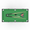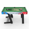 Домашний бильярд — лучшее развлечение на каждый день и в праздники для всей семьи! Игровой стол DFC «SUPER CHAMPION» SB-BT-02LSSC в яркой красно-синей расцветке подарит море веселья и радости детям и взрослым. Особенности стола Игровое поле Поле для игры размерами 52,7 х 114 см сделано из МДФ толщиной 4,75 мм. От вылета шаров защищают стенки высотой 10 см по всему периметру. Высота стенок по бокам 12 мм, ширина - 30 мм. Ножки стола Ножки шириной 80 мм изготовлены из МДФ толщиной 13 мм, для большей прочности они ламинированы ПВХ чёрного цвета. Конструкция укреплена специальной перекладиной из того же материала, её толщина составляет 12 мм. Складная конструкция Стол легко складывается для хранения в вертикальном положении. Его можно убрать к стене или в кладовку: в сложенном состоянии он занимает минимум свободного пространства. Комплектация Стол рассчитан на двух игроков, поэтому в комплект входят два кия длиной 92,5 см и два мела. Также в набор входит всё необходимое для комфортной игры: комплект шаров, диаметром 37 мм, изготовленных из смолы; треугольник и щётка для игрового поля. Ширина лузы - 6 см.