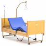 По краям кровати расположены специальные отверстия (4 штуки) для установки инфузионной стойки и других принадлежностей. В комплект входит инфузионная стойка, ванночка для мытья головы, а также штанга для подтягивания больного с регулируемой по высоте рукояткой.